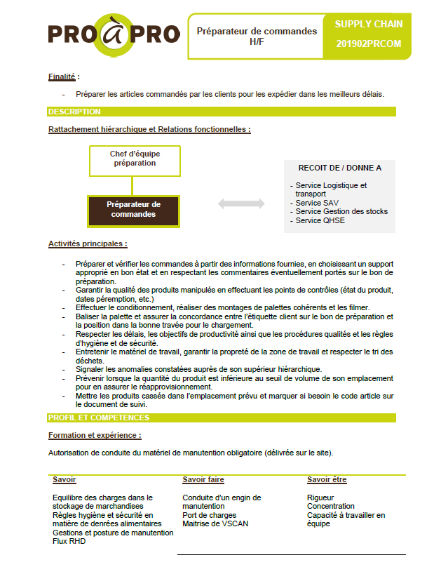 · Vous préparez les bons de commandes en vérifiant la conformité des produits en comparant avec les bons de commandes.