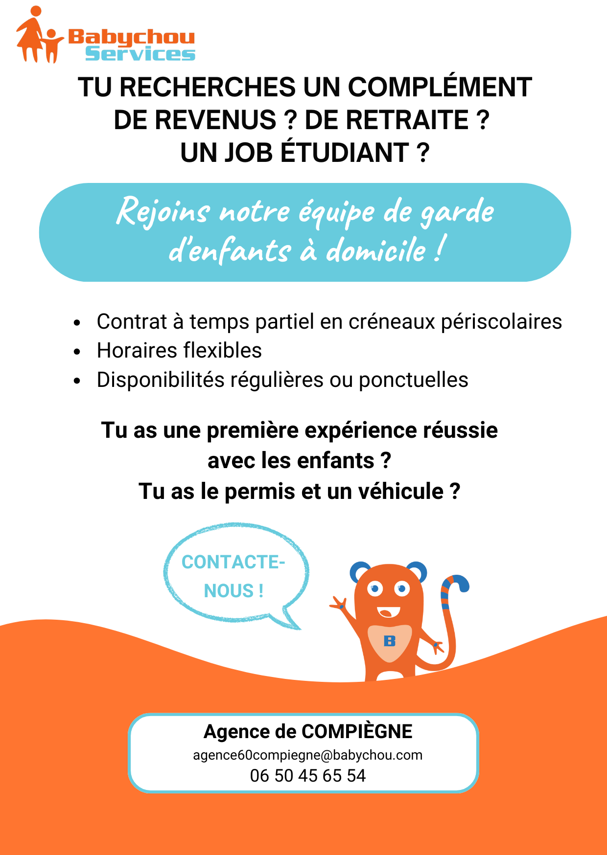 Vous aimez les enfants, les journées remplies de rires et de jeux ? Vous êtes au bon endroit ! Notre agence de garde d'enfants cherche des supers nounous à partir de septembre. Prêt(e) à embarquer pour cette nouvelle aventure dès maintenant ? Lisez la suite !
